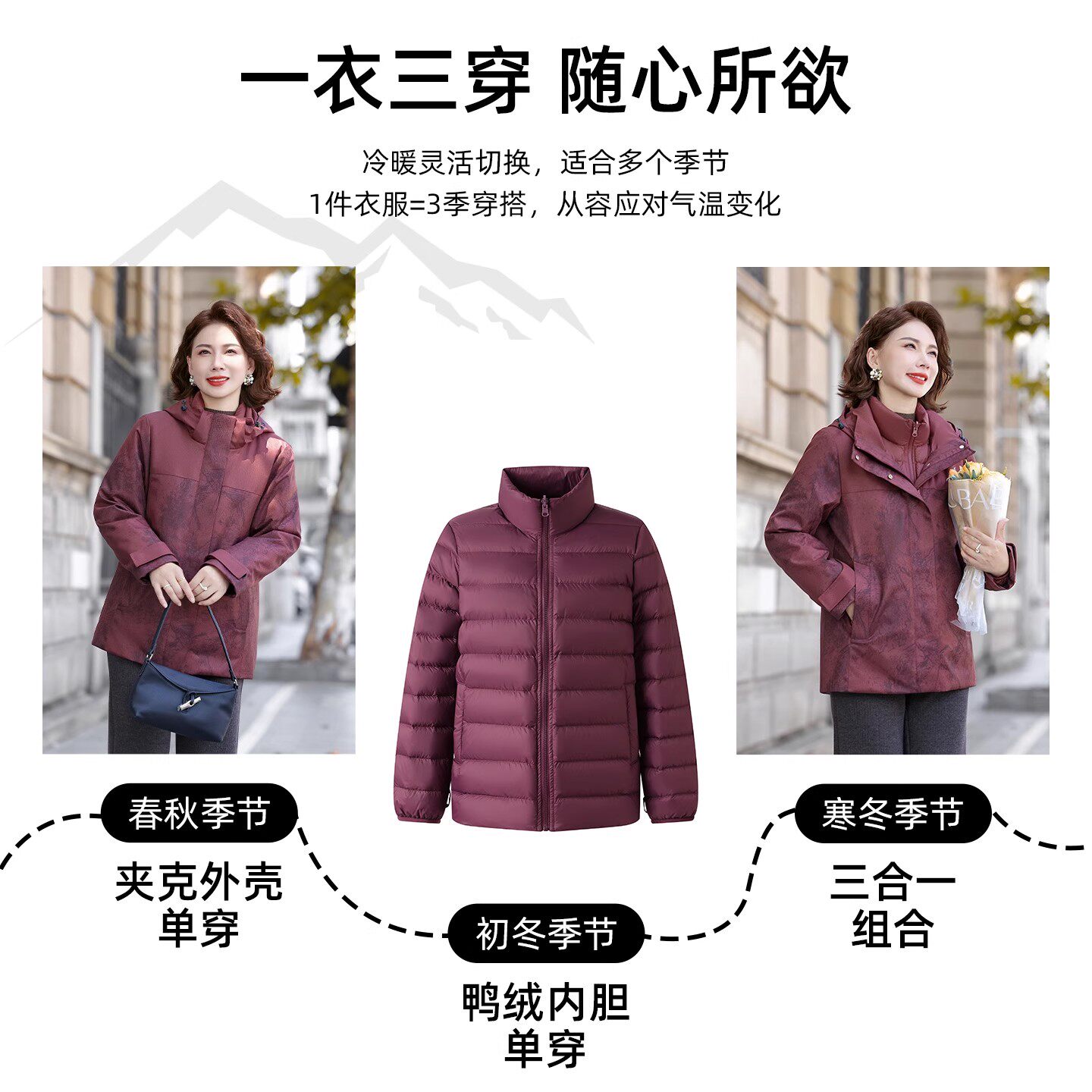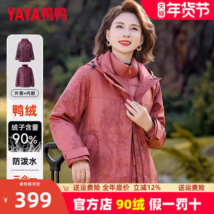 鸭鸭三合一妈妈羽绒服女2025新款冬季户外可拆卸内胆一衣三穿外套