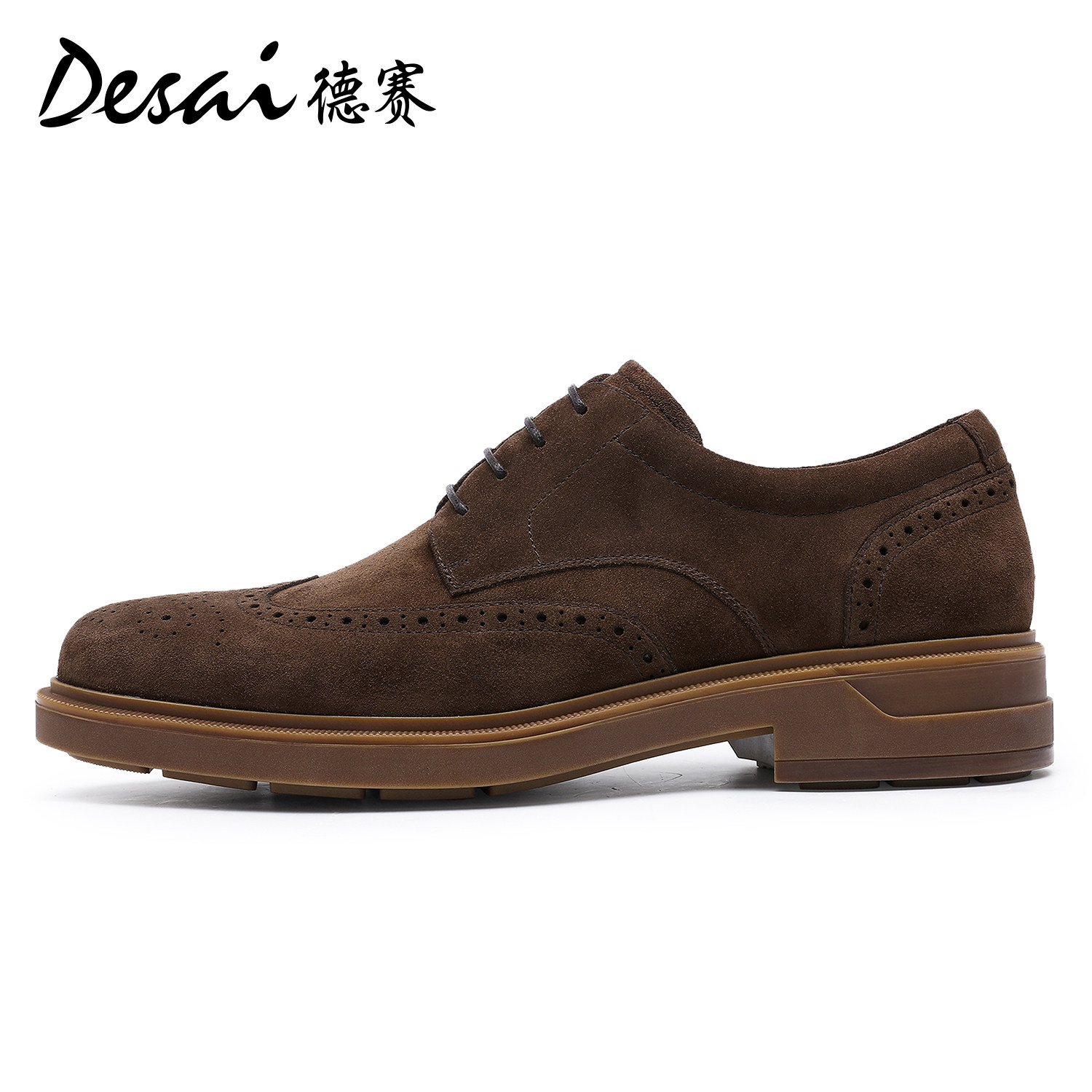 德赛2025春秋复古气质男鞋时尚布洛克皮鞋雕花正装商务男鞋