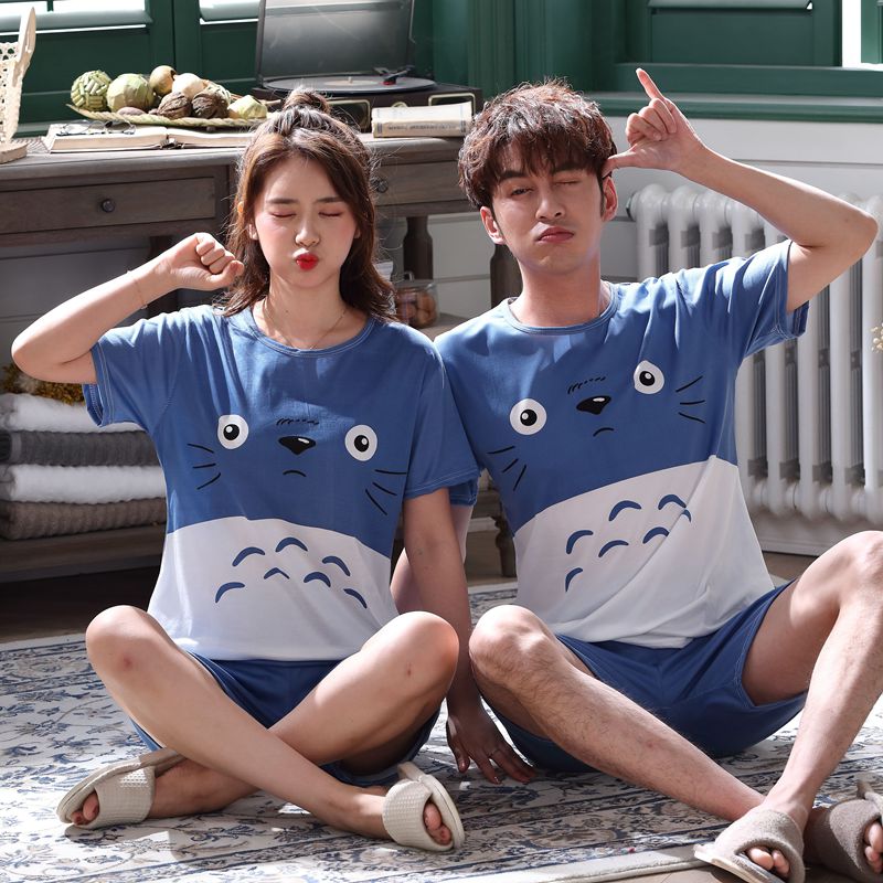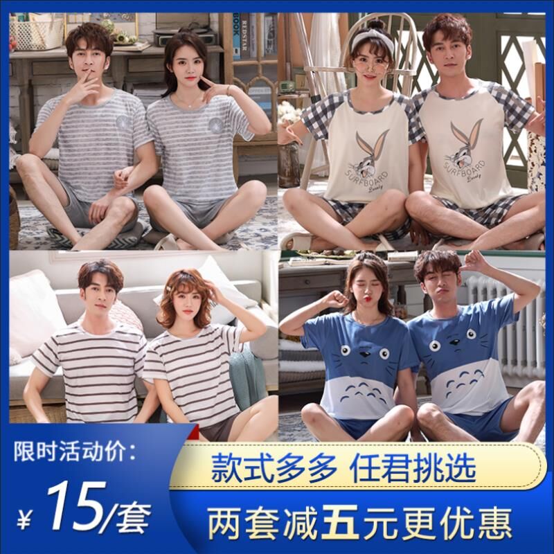 情侣睡衣夏季短袖可爱夏天薄款大码E春秋男士女款两件套装家居服