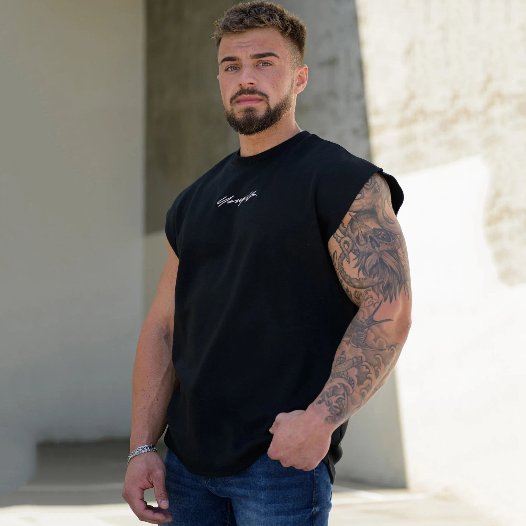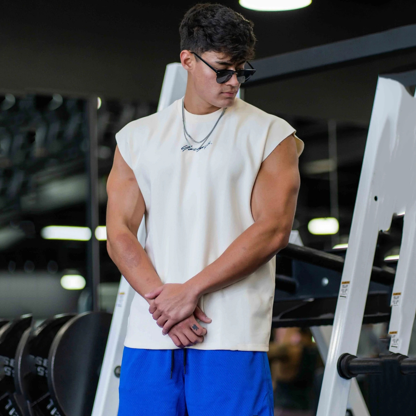 美式运动健身坎肩背心男休闲跑步大码宽松厚棉毛边无袖训练衣服