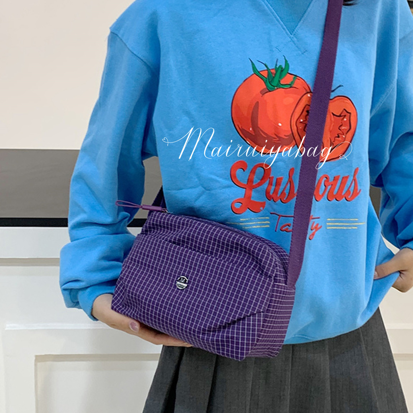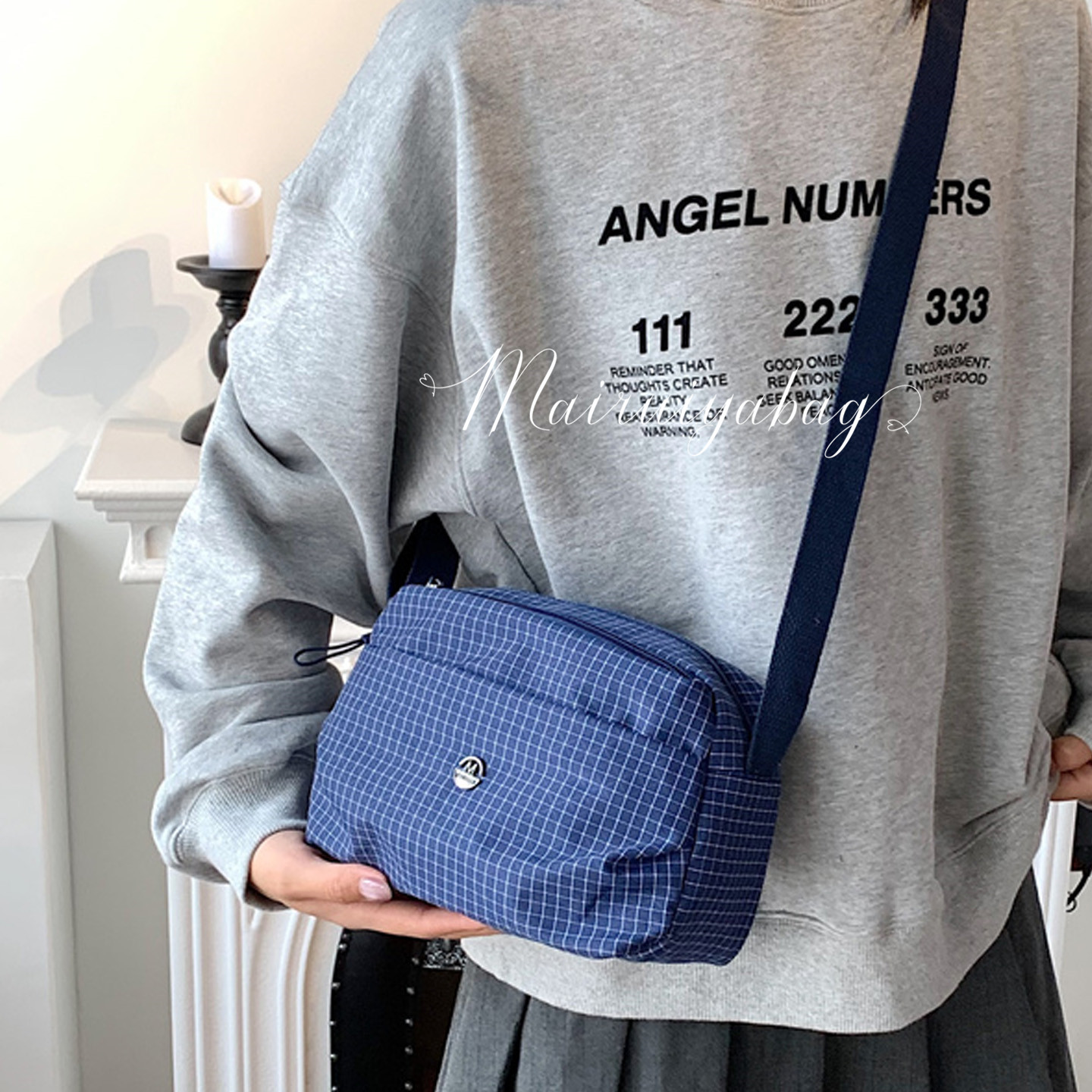 格子尼龙布时尚休闲轻便运动包