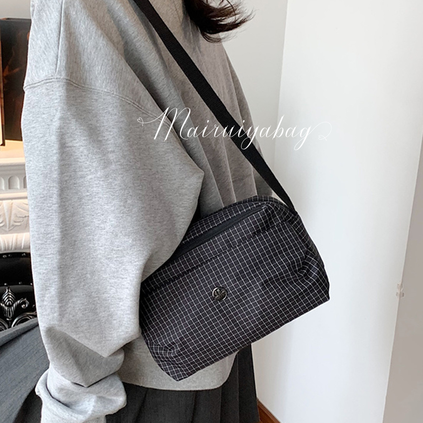 格子尼龙布小包包2025新款时尚运动包休闲百搭男女轻便单肩斜挎包