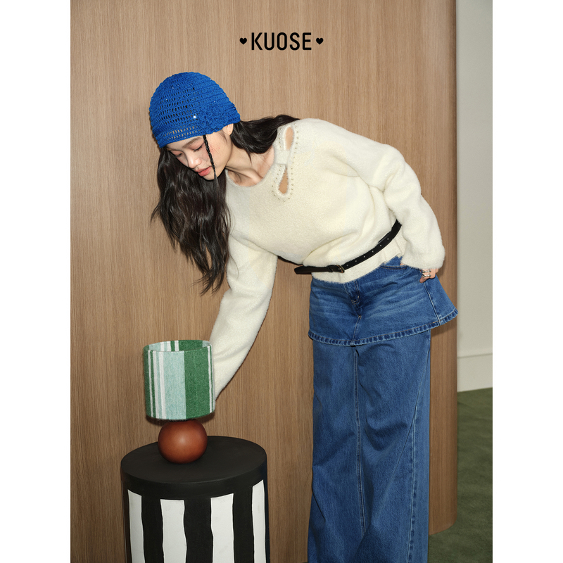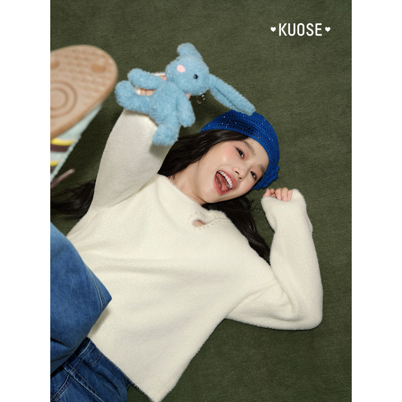 阔色米白色仿貂毛镂空毛衣女装2025秋冬季新款内搭针织衫毛毛上衣