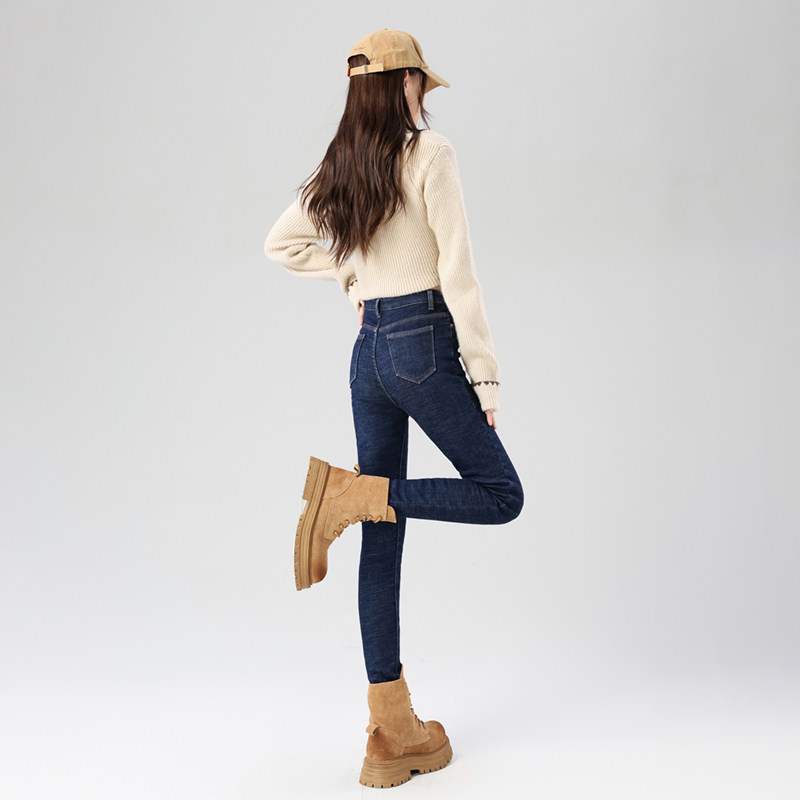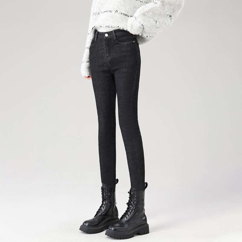 黑色高腰小脚牛仔裤女加绒显瘦修身紧身铅笔裤长裤