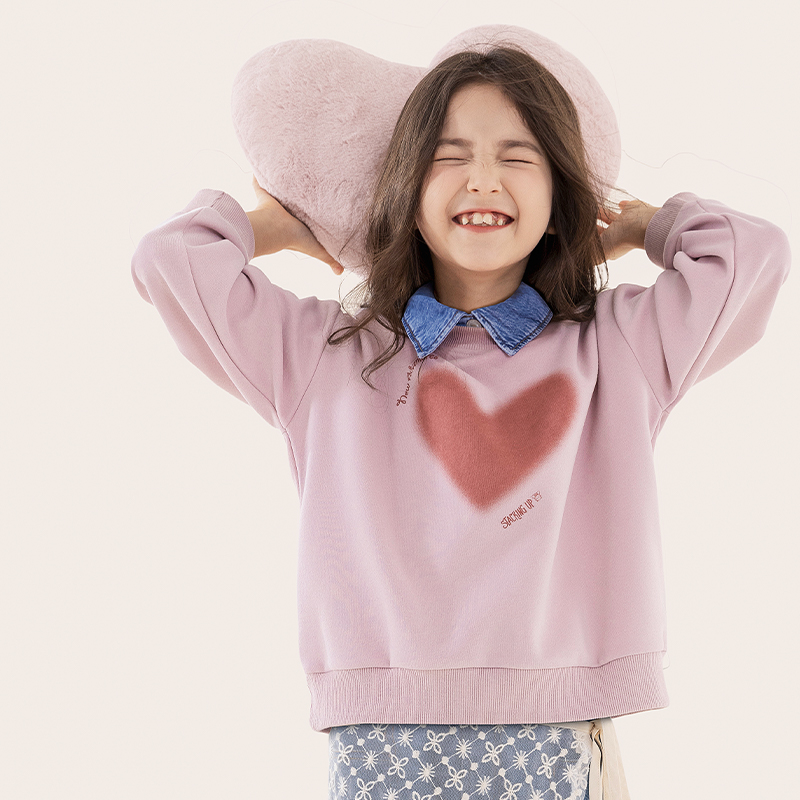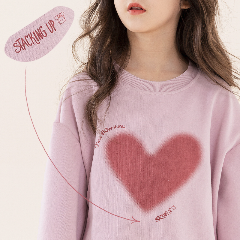 迪士尼女童卫衣2025秋季儿童爱心时尚上衣中大童加绒童装冬季