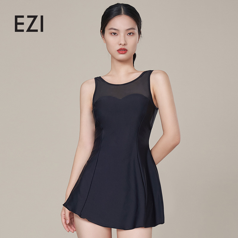 弈姿连体裙式泳衣女夏小胸保守显瘦露背泡温泉度假泳装游泳衣
