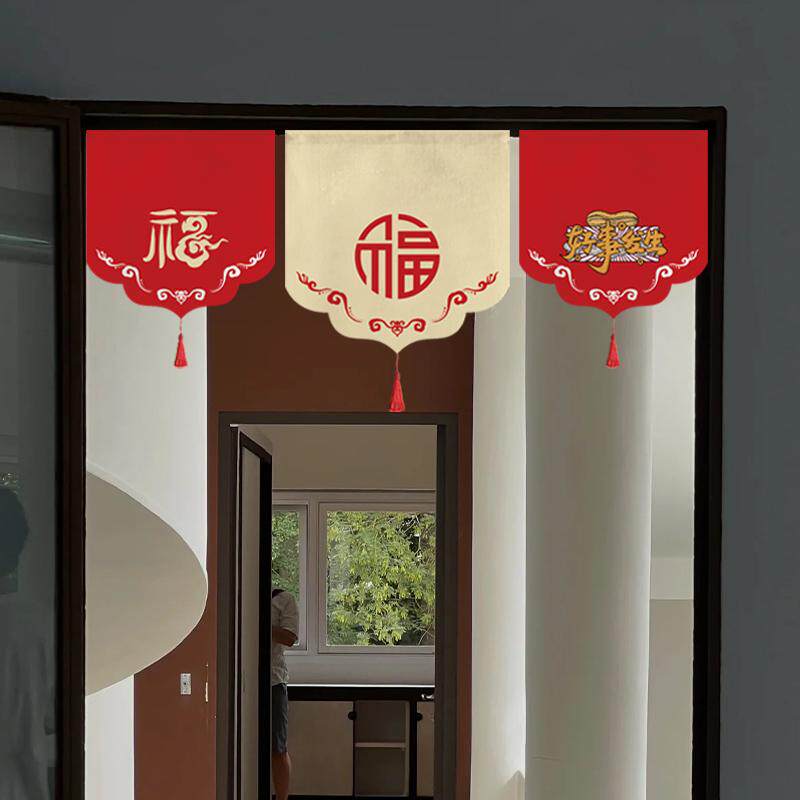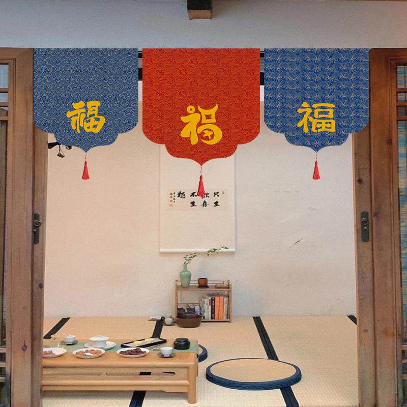 中式喜庆入户三角旗帘门帘福字茶室装饰挂帘厨房窗户短帘隔断半帘