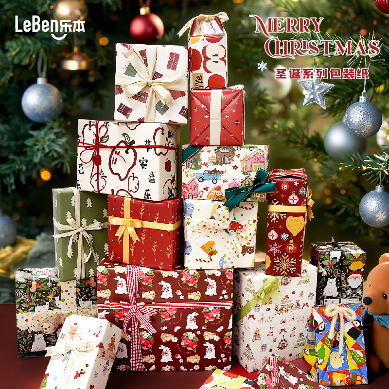 乐本·圣诞节系列包装纸礼物盒礼品纸鲜花花束纸生日礼盒纸手工diy包装材料可爱卡通大尺寸高级感书皮纸