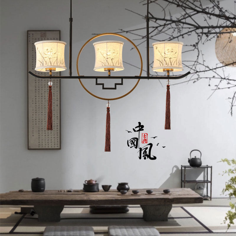 餐厅吊灯长方形三头吧台灯创意个性书房饭厅新中式吊灯中国风复古