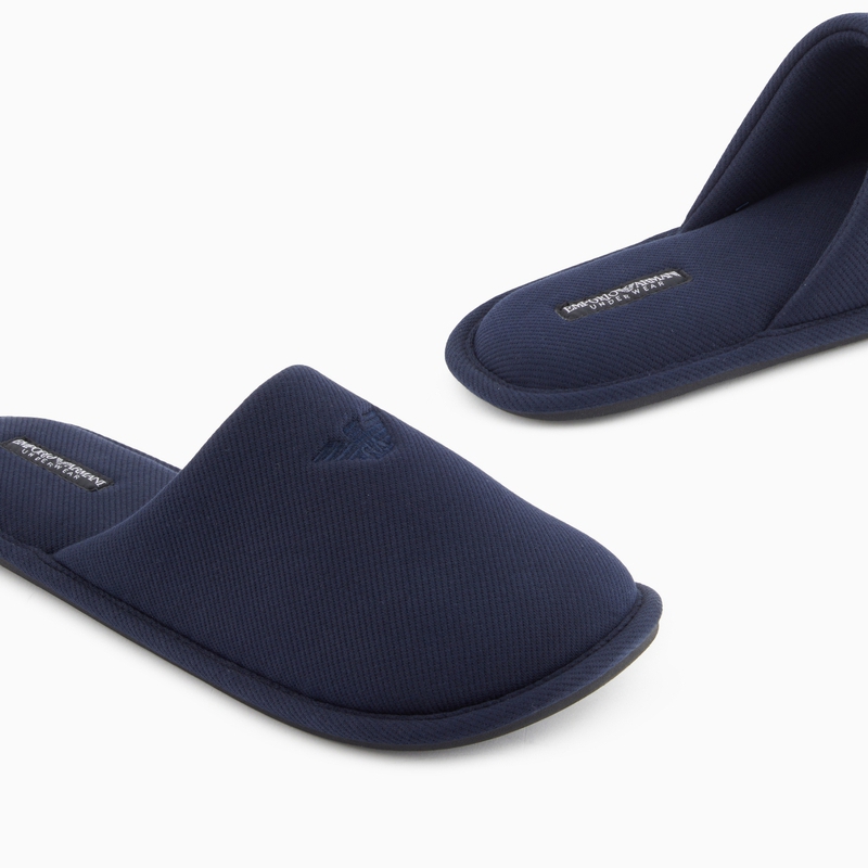 EMPORIO ARMANI/阿玛尼秋冬新款男士平底斜纹刺绣家居拖鞋官方