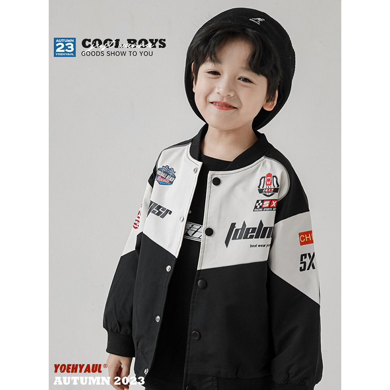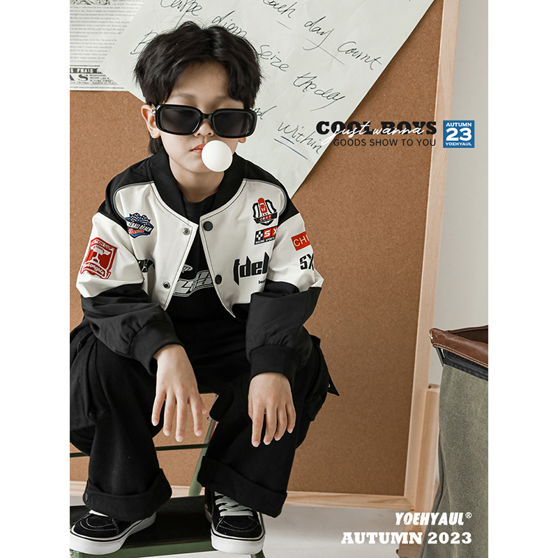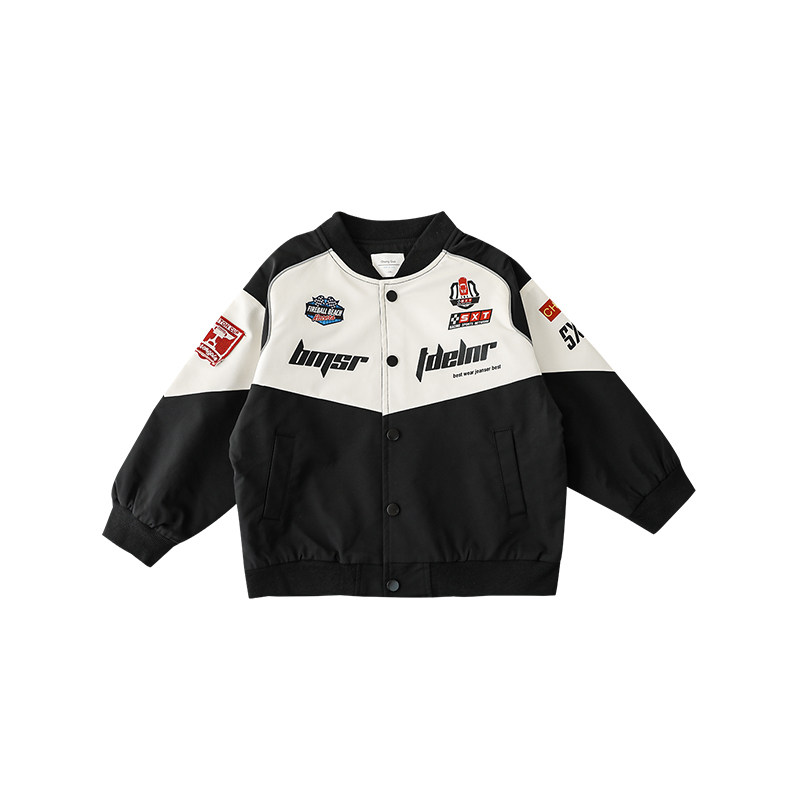 幼悠男童字母印花撞色拼接棒球服春秋新款儿童四合开口帅气外套潮