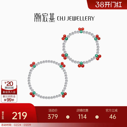 潮宏基趣玩足银玛瑙手链银饰手串樱桃手饰甜美亲子宝宝儿童礼物