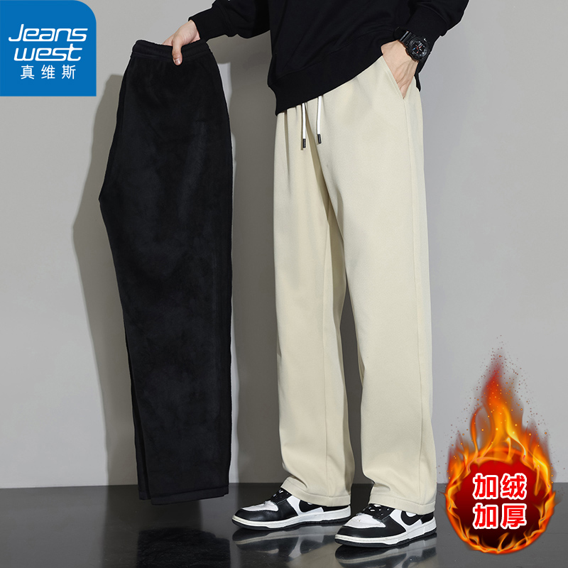 【真维斯】裤子男女秋冬潮流直筒运动裤加绒加厚宽松卫裤休闲长裤