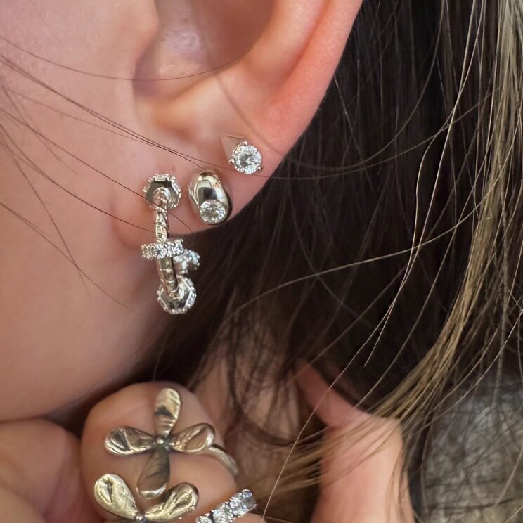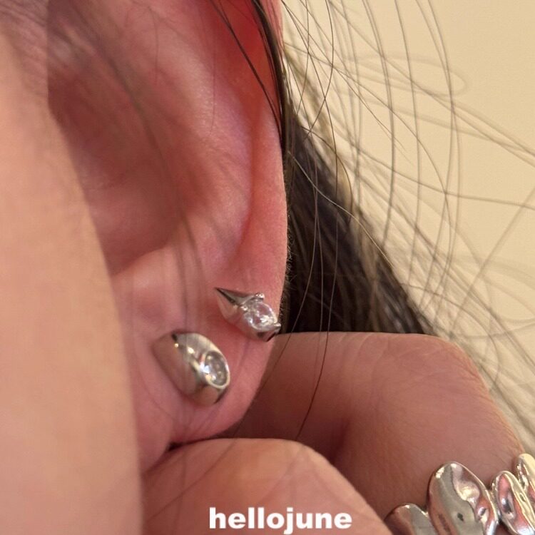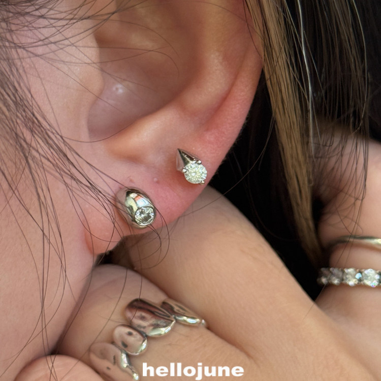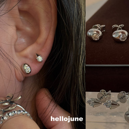 hellojune 通体925银 鹅蛋椭圆单钻耳钉 几何三角圆钻耳钉