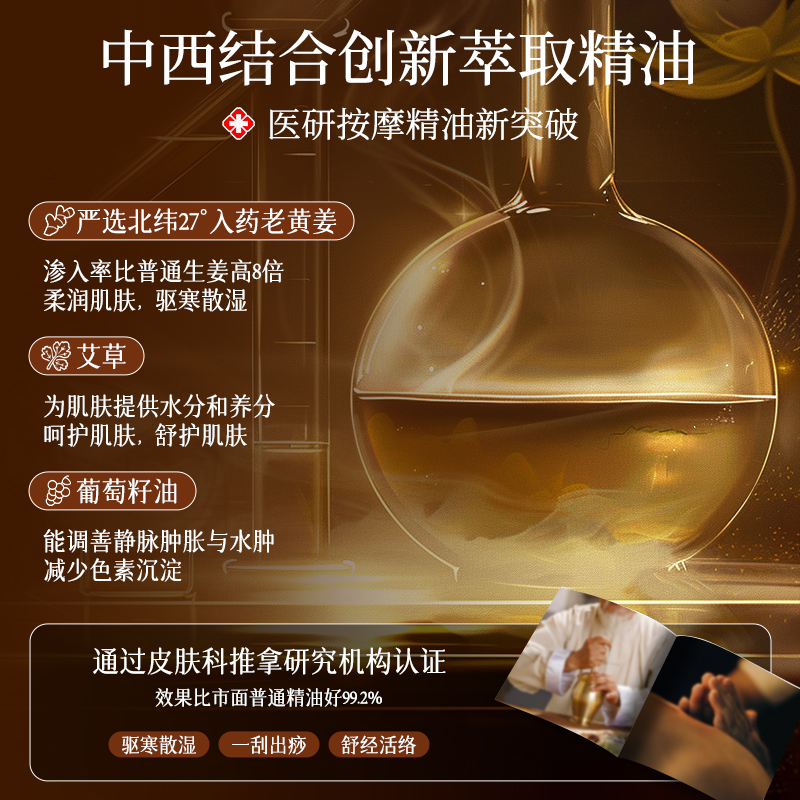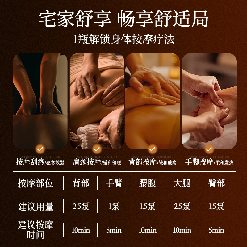 艾草生姜按摩精油开背推背植物发热玫瑰全身疏通经络身体刮痧专用