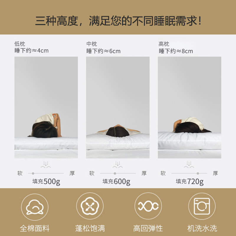 富丽真金枕头枕芯全棉护颈椎软枕成人一对家用深睡枕学生宿舍低枕