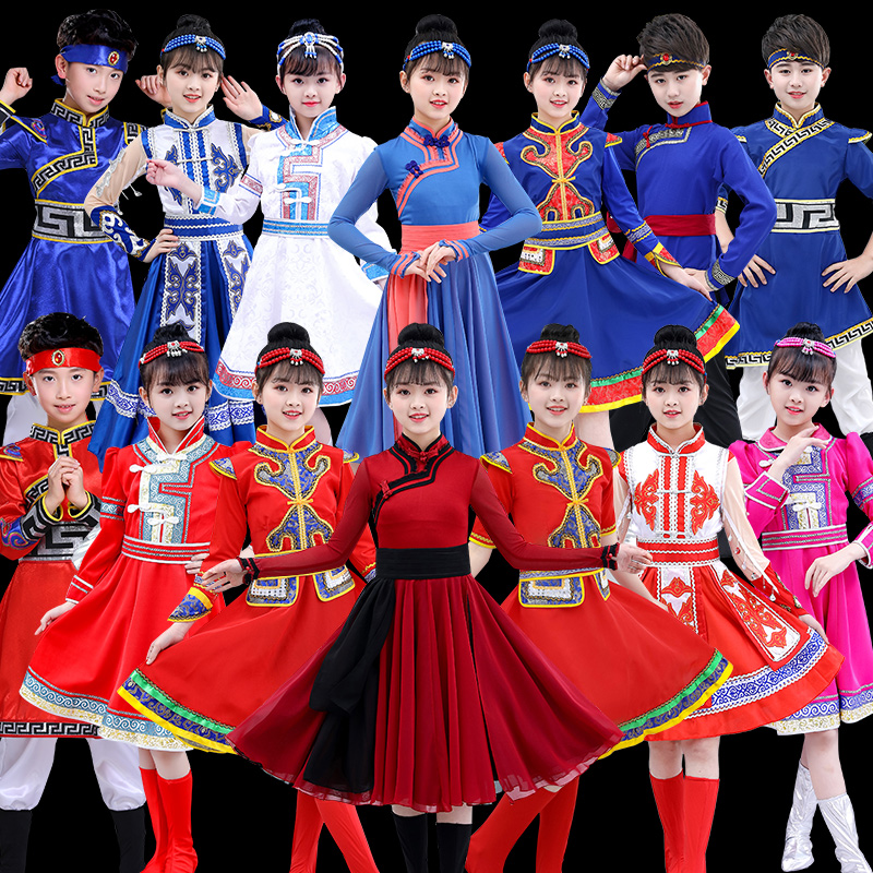 少数民族服装儿童男女蒙古袍藏A族舞蹈演出服蒙族男童名族男孩新