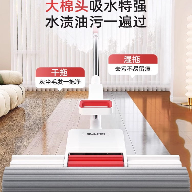 好媳妇海绵拖把家用一拖净客厅免手洗吸水官方旗舰店胶棉地拖38cm