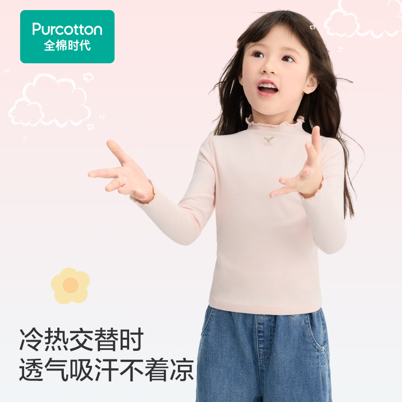 全棉时代儿童t恤女童针织打底衫长袖纯棉秋衣女孩宝宝白色上衣