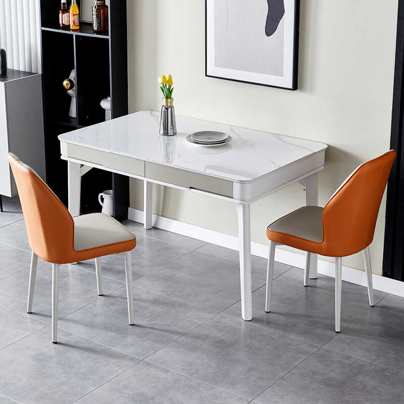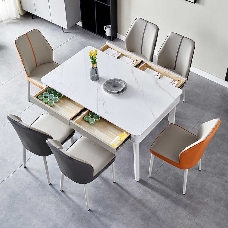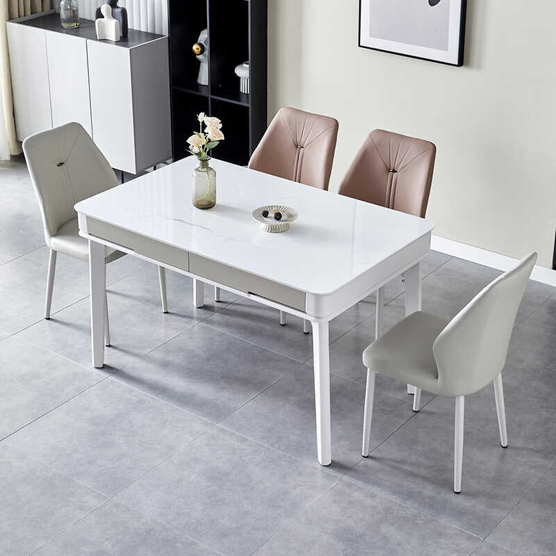 岩板奶油风餐桌小户型现代简约餐桌椅组合带抽屉储物饭桌2024新款