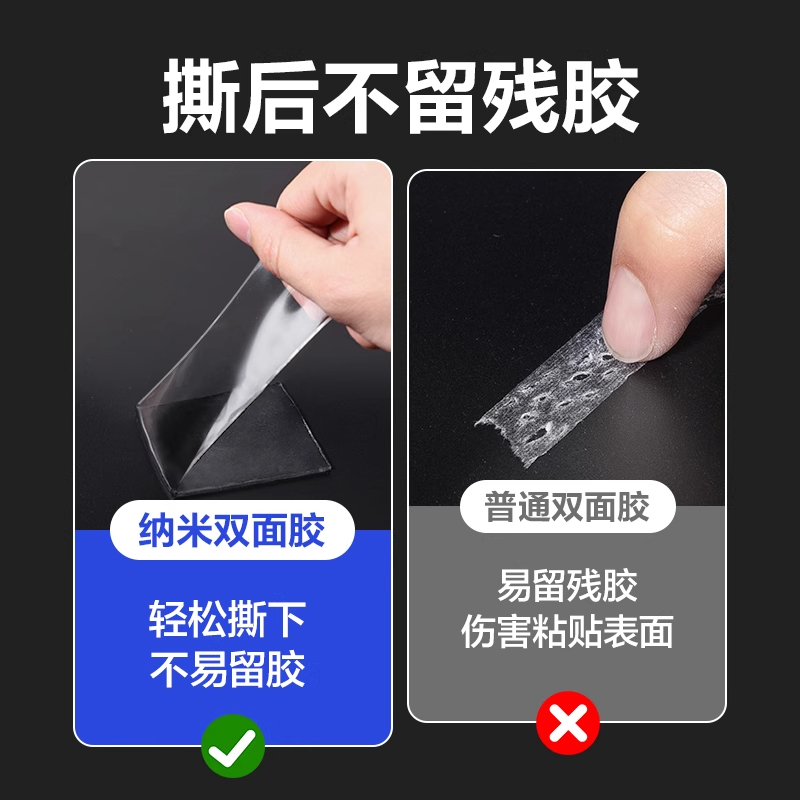 纳米双面胶高粘度强力双面贴固定墙面超强防水车用万能粘胶贴片无痕透明胶带魔力贴强力粘双面不留痕胶贴胶布