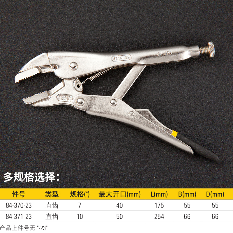 史丹利直齿大力钳7寸10寸加硬直齿平口钳子夹持钳水管钳84-371-23