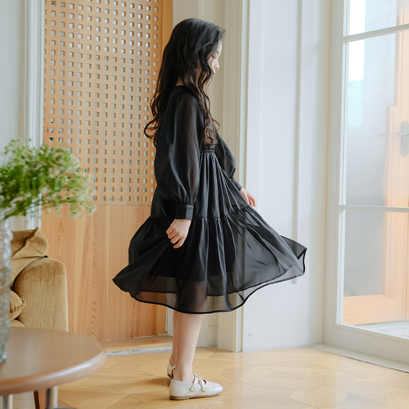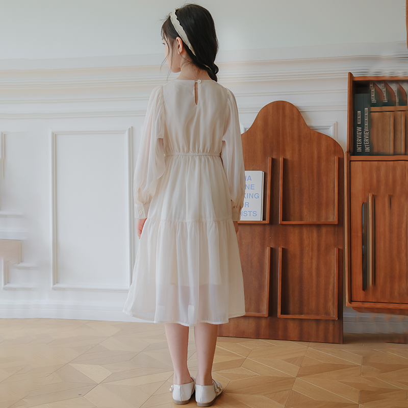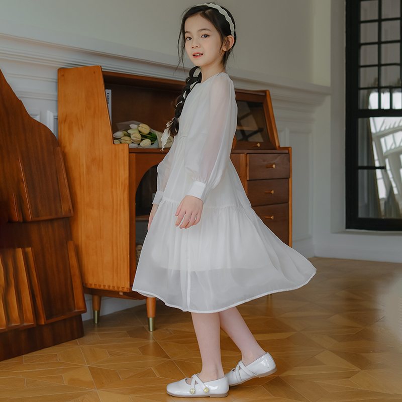 女童雪纺连衣裙2025春夏季新款中大童长袖收腰裙子长袖洋气公主裙