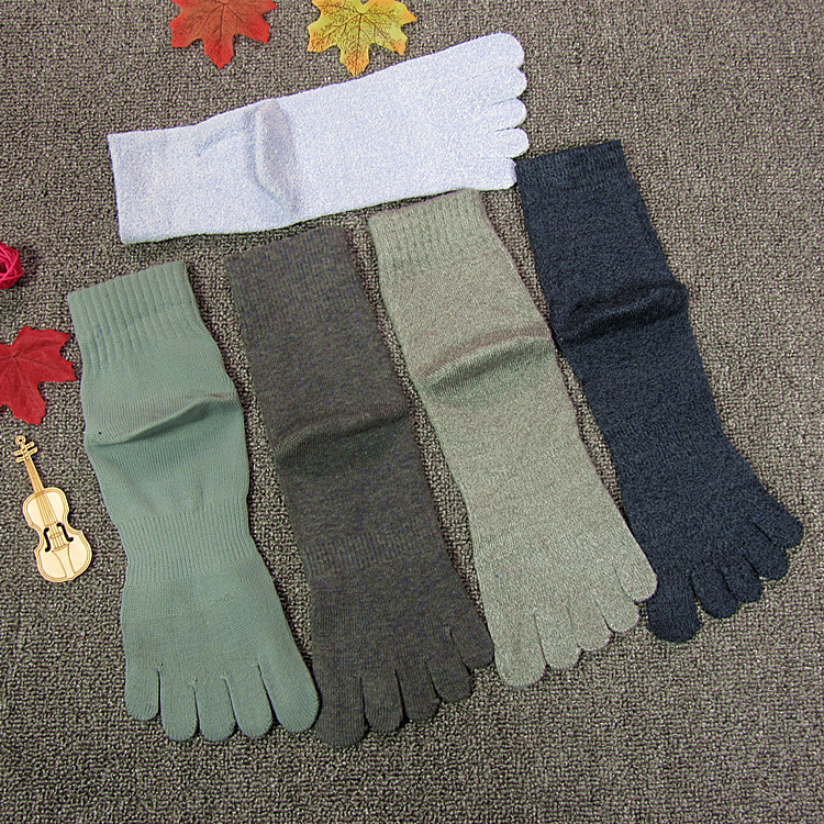 五指袜男纯棉短筒中筒秋冬季厚款简约运动透气分脚趾全棉防臭短袜