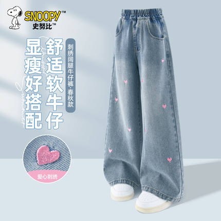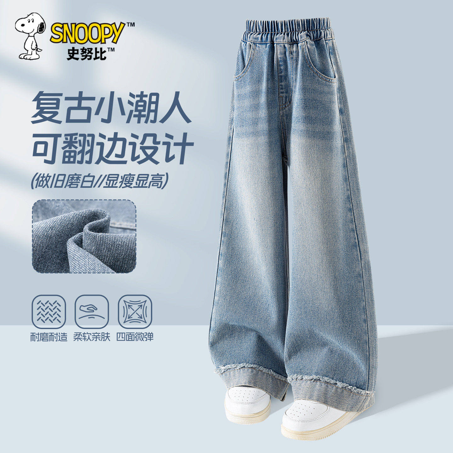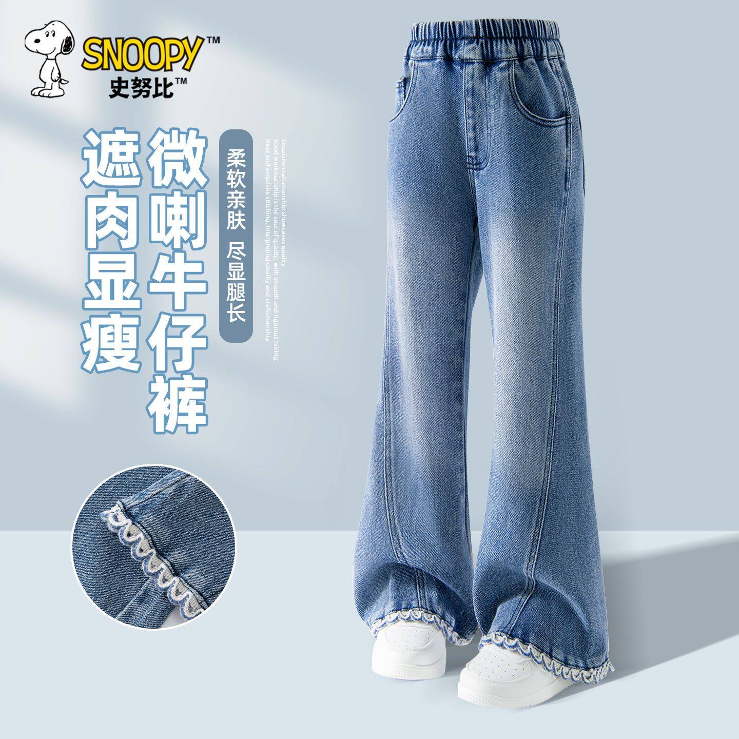 史努比女童时尚牛仔裤春秋款2026新款校园潮流女孩多款百搭牛仔裤