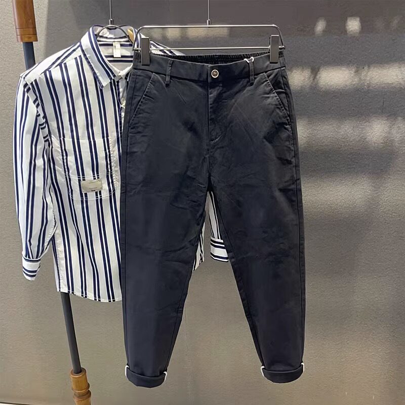 自主九分休闲潮纯色裤