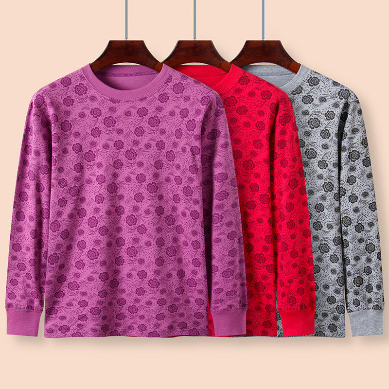 女士纯棉秋衣大码宽松中老年人老太太中高领长袖棉毛衫女打底内穿