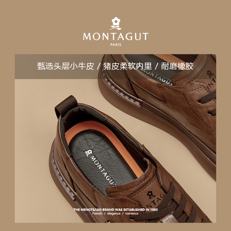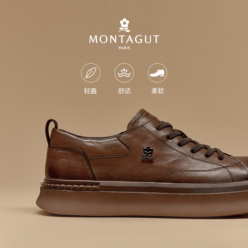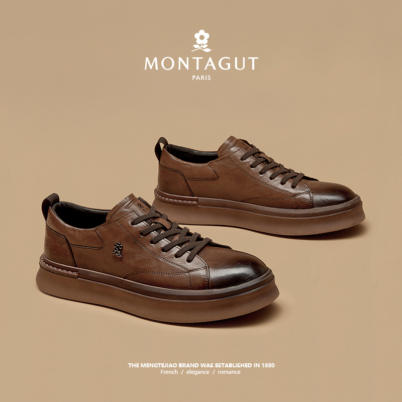 梦特娇真皮男鞋秋季复古擦色高级感休闲皮鞋男软牛皮工作厚底板鞋