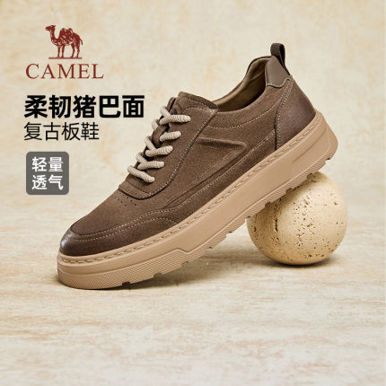 骆驼男鞋2025冬季新款厚底休闲皮鞋男真皮工装鞋低帮复古板鞋男