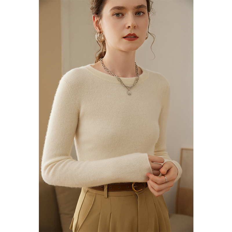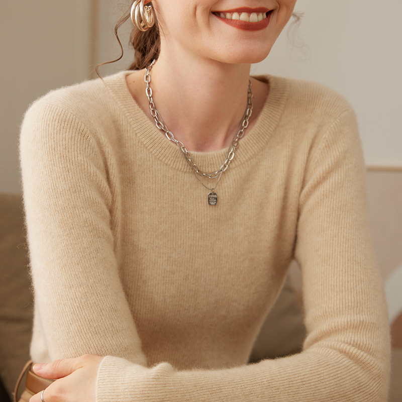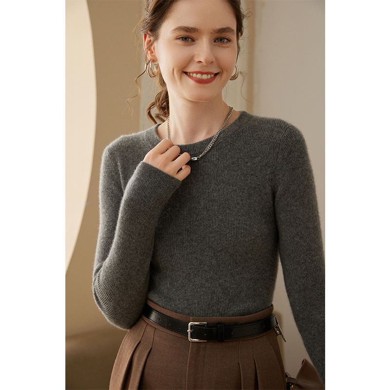 秋冬新款圆领羊绒衫女100纯山羊绒套头内搭针织修身显瘦打底毛衣