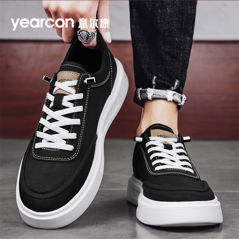 意尔康男鞋一脚蹬休闲布鞋秋季透气男士爸爸轻便百搭厚底帆布板鞋