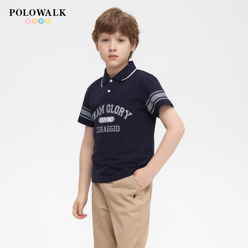 POLOWALK童装男童T恤2025夏季新品珠地翻领POLO衫印花短袖上衣