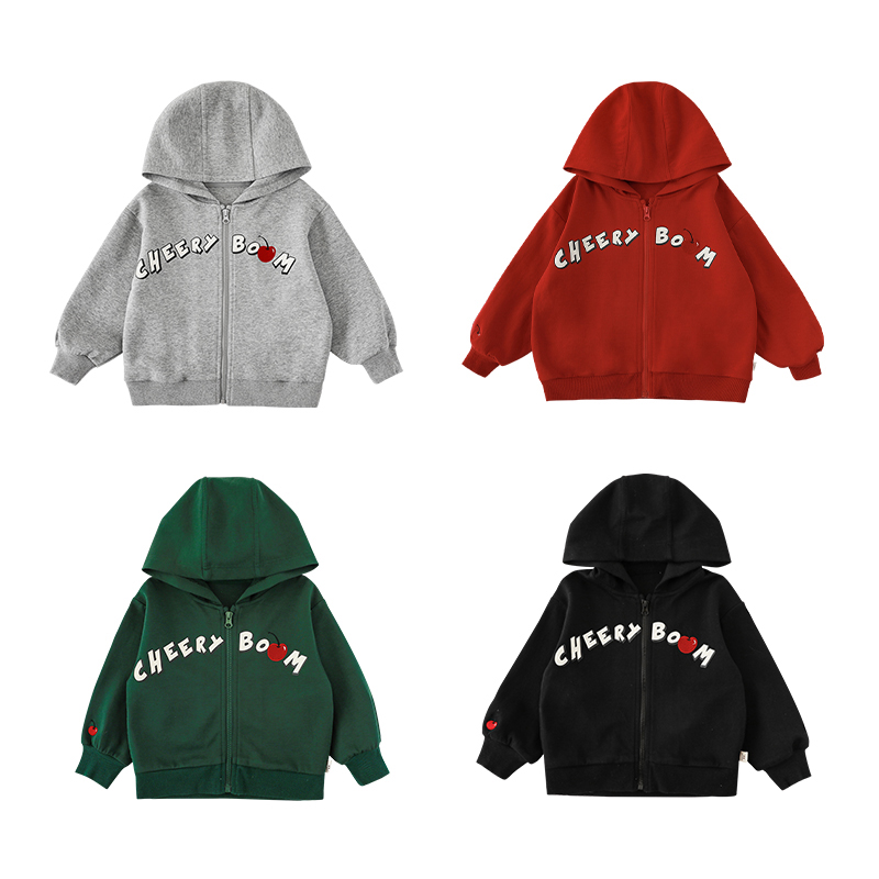 幼悠男童樱桃刺绣胶印休闲连帽卫衣2025春秋新款儿童帅气拉链外套
