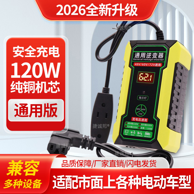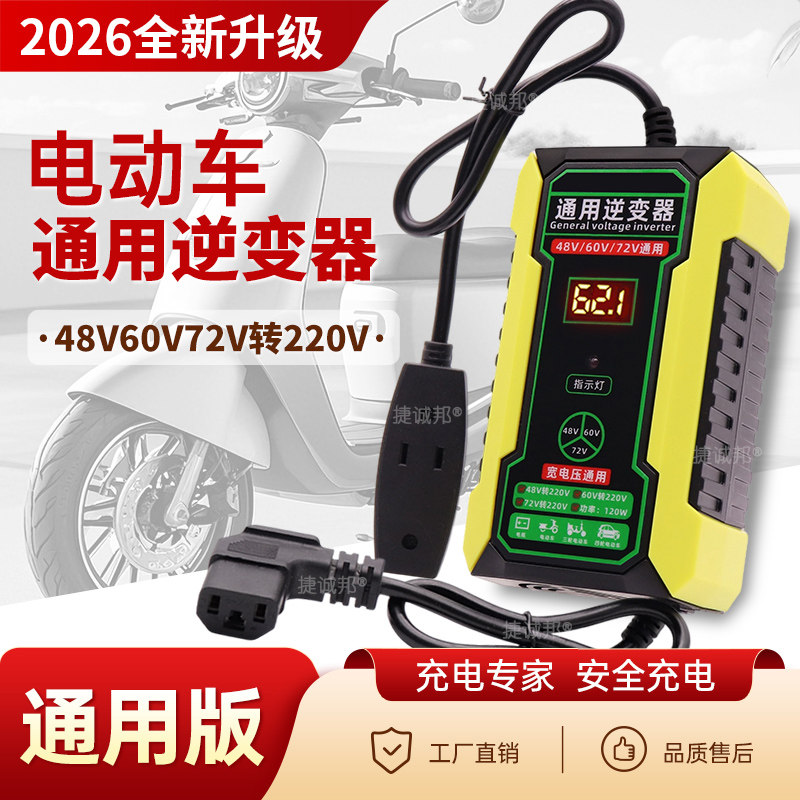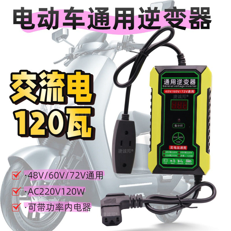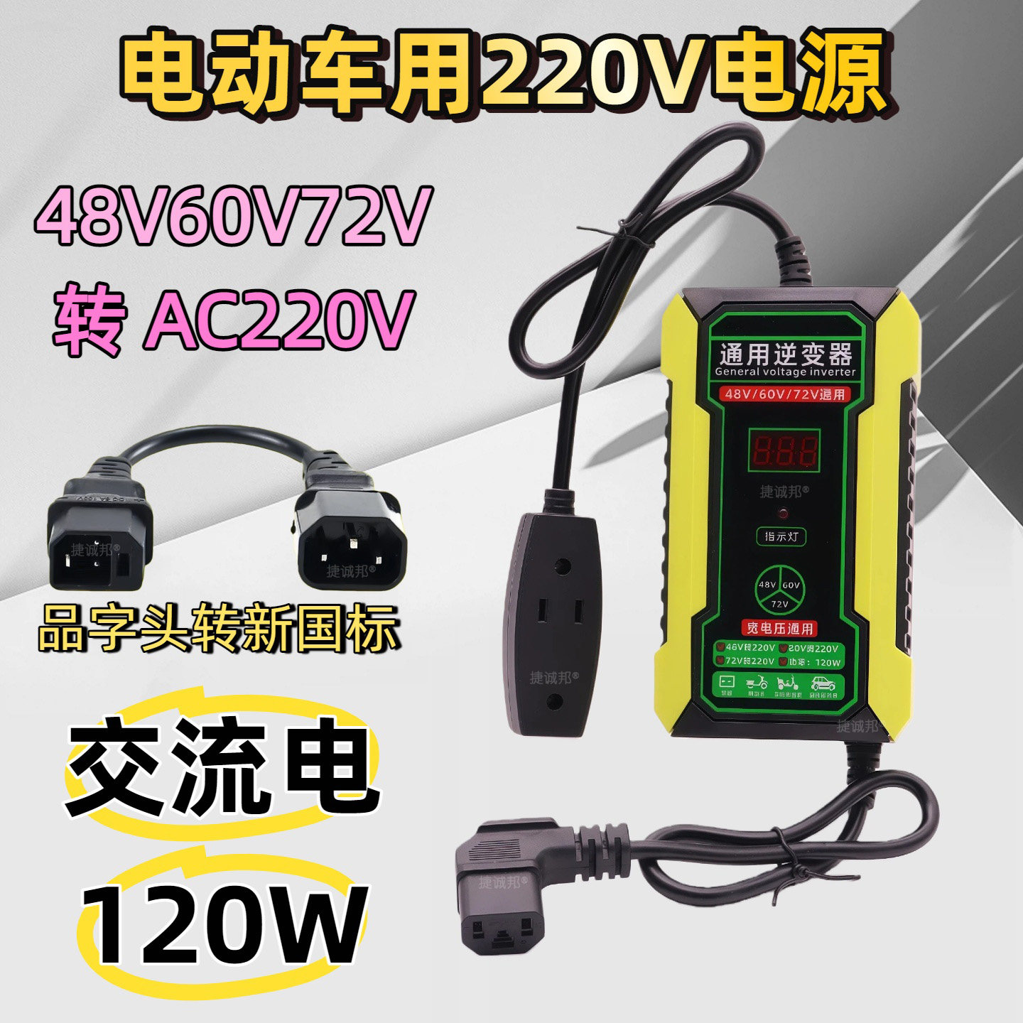 电瓶车通用车载逆变器品字接口新国标48V60V72V转AC220V120瓦插座