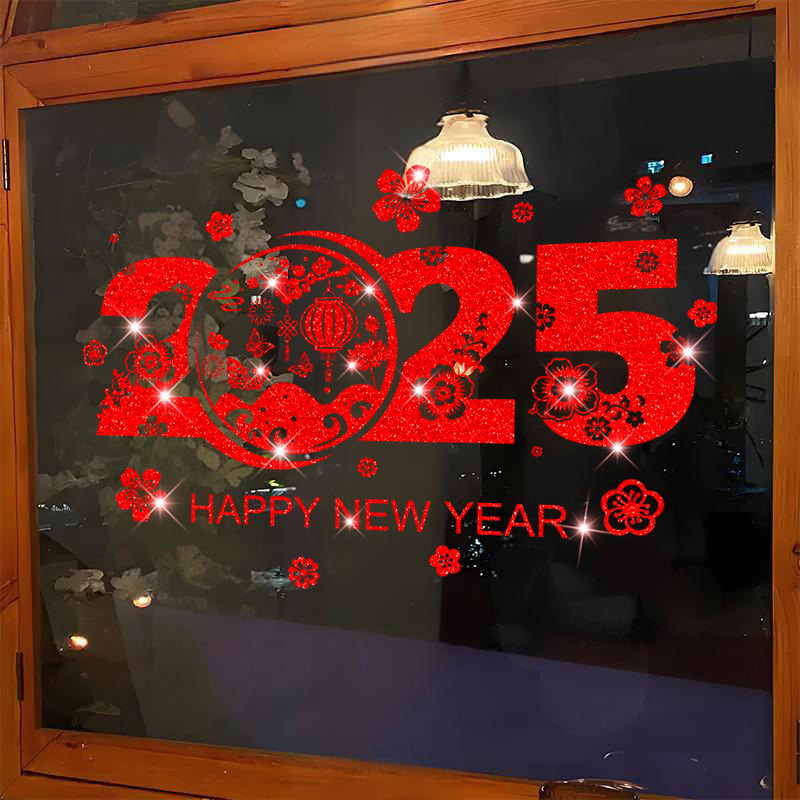 2025新款蛇年窗花纸玻璃贴静电贴过年春节福字贴门贴新年装饰窗贴