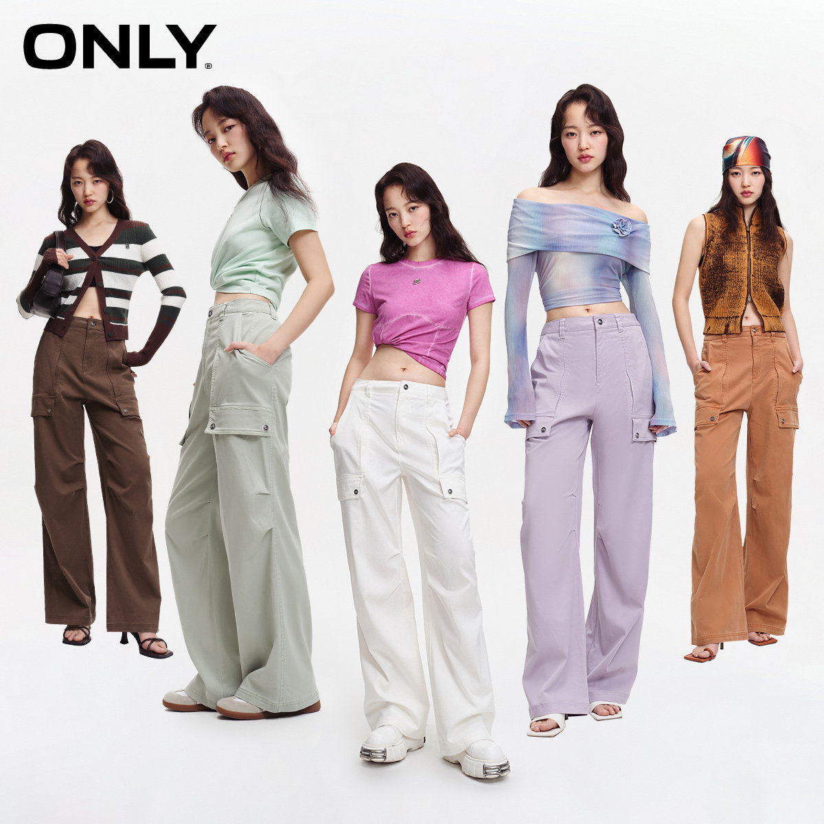 绫致ONLY2025春夏百搭休闲高腰口袋阔腿工装休闲裤女时尚潮流