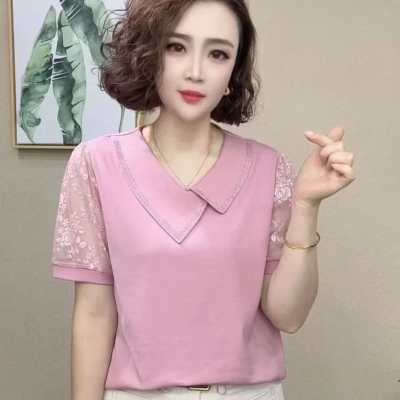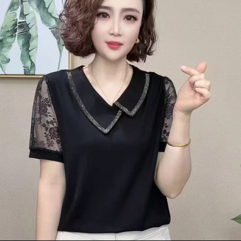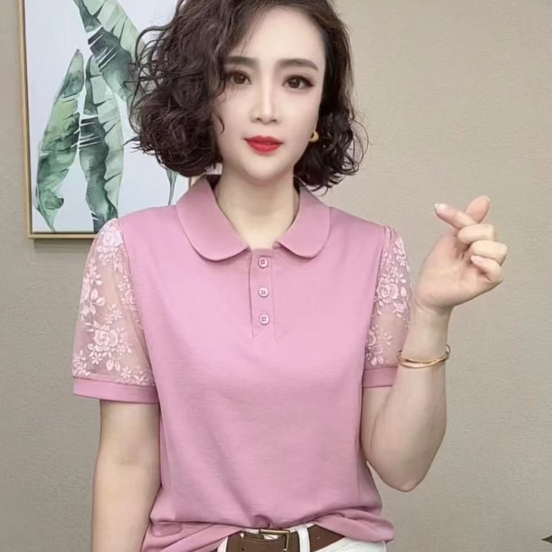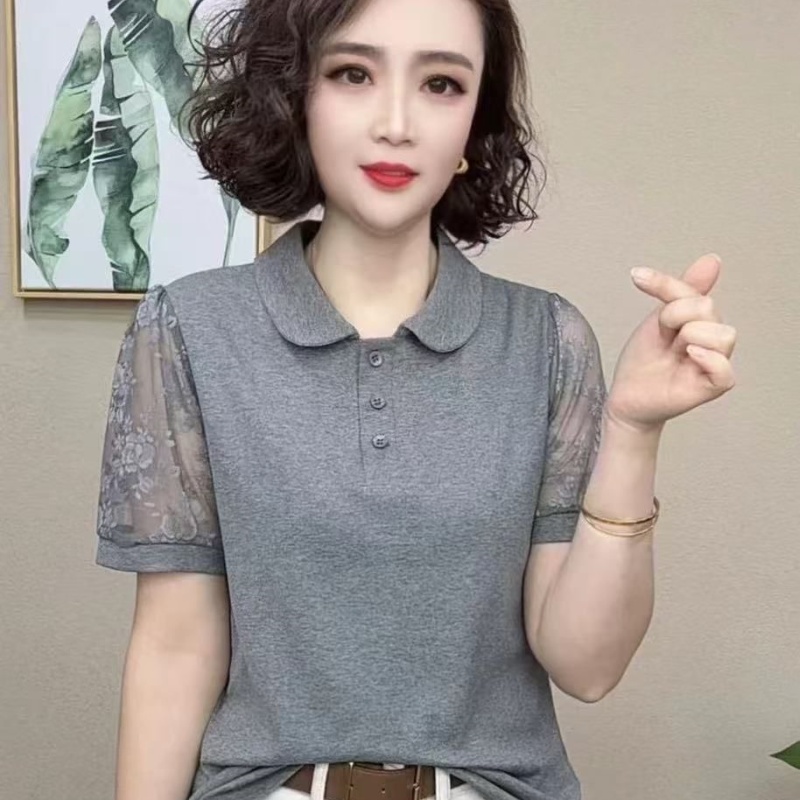 2025夏款大码修身显瘦短袖女T恤时尚洋气中年妈妈装气质上衣T恤潮