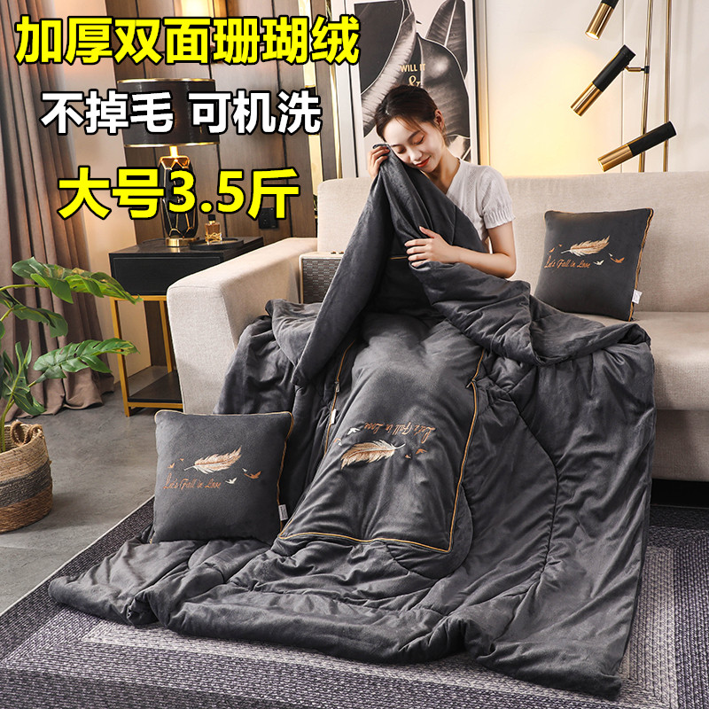 加厚珊瑚绒抱枕被子两用办公x室沙发午睡空调被车载靠垫枕头被子