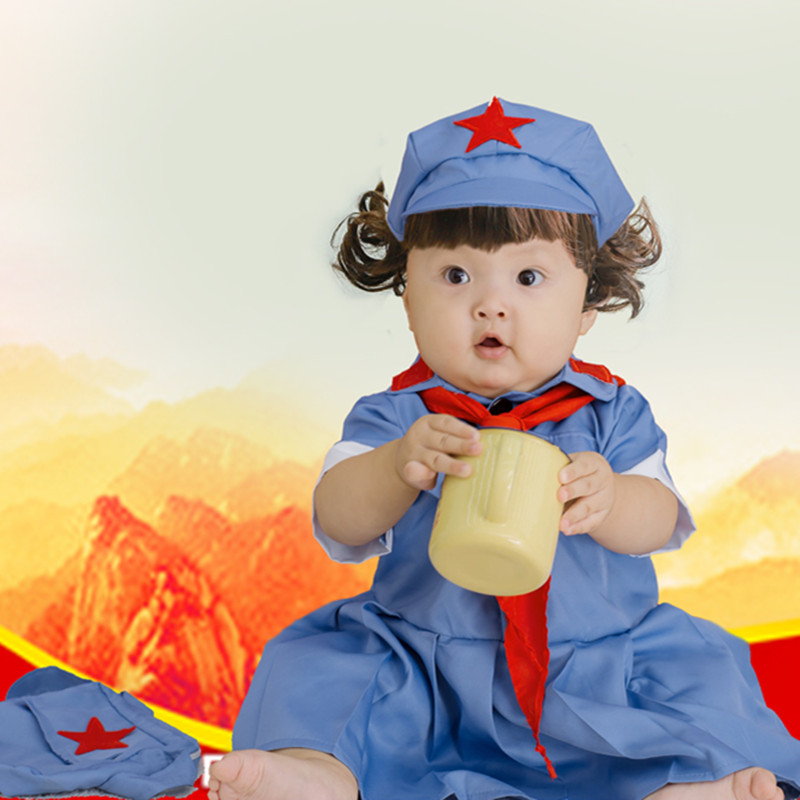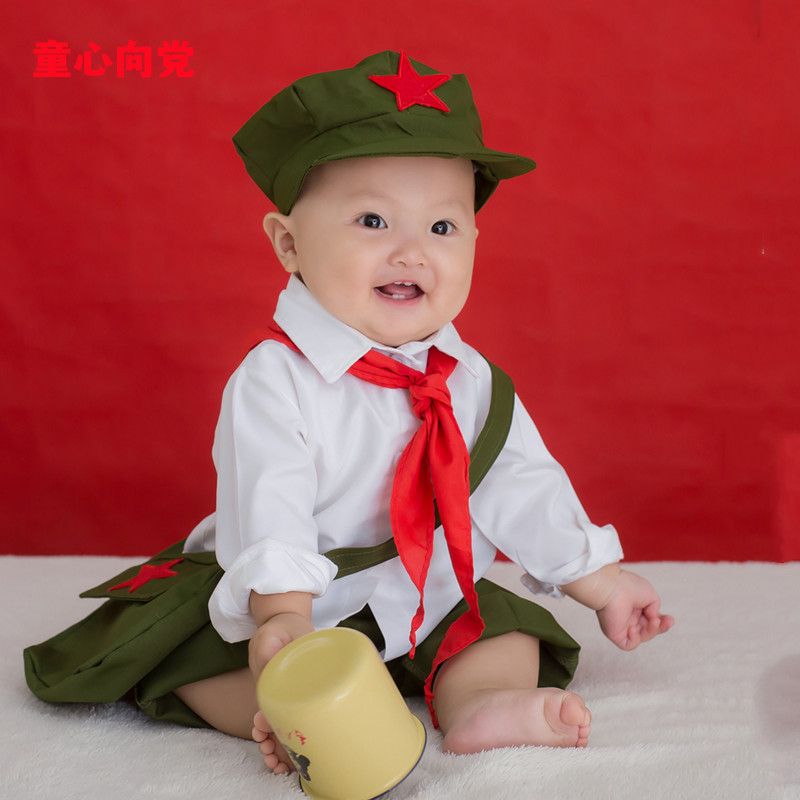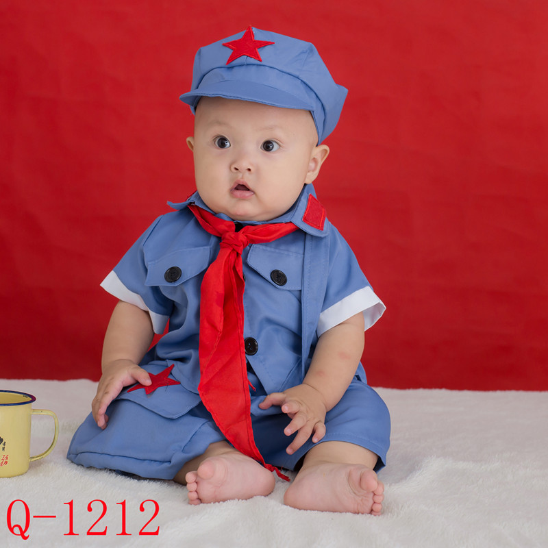 新款婴儿拍照小红军迷彩衣服周岁宝宝百天照相儿童摄影服装八路军