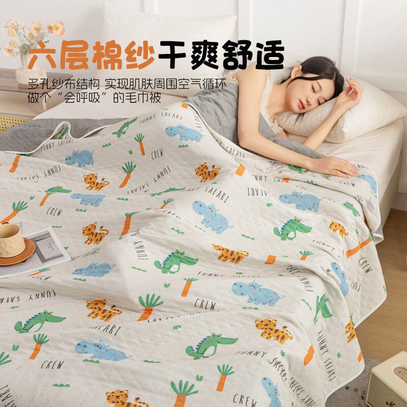 金号儿童纱布盖毯六层纱布毛巾被100全棉老式棉纱沙发午睡毯