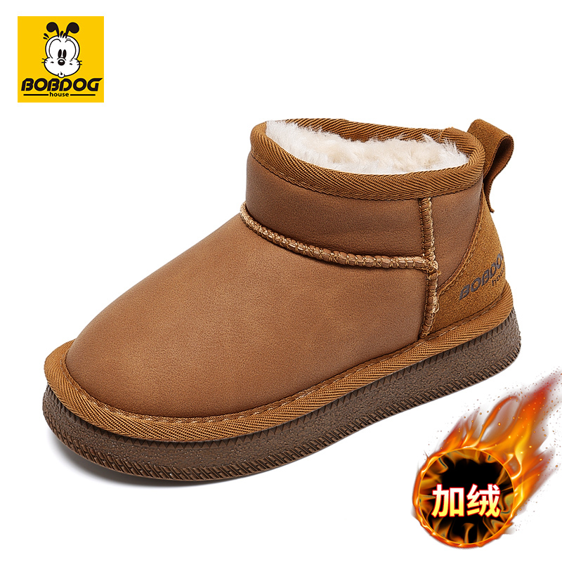 巴布豆儿童雪地靴冬季新款加绒保暖大棉鞋小女孩短靴男童户外鞋子