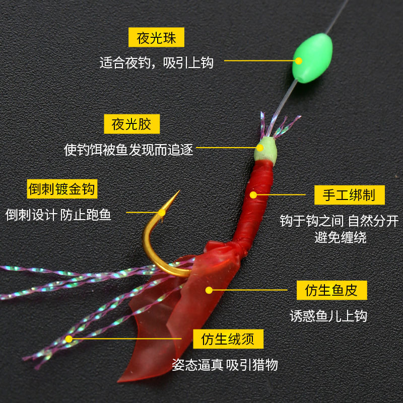 翘嘴串钩钓组路亚仿生假饵虾皮白条飞蝇红皮拟饵带鱼皮线组钩抛竿