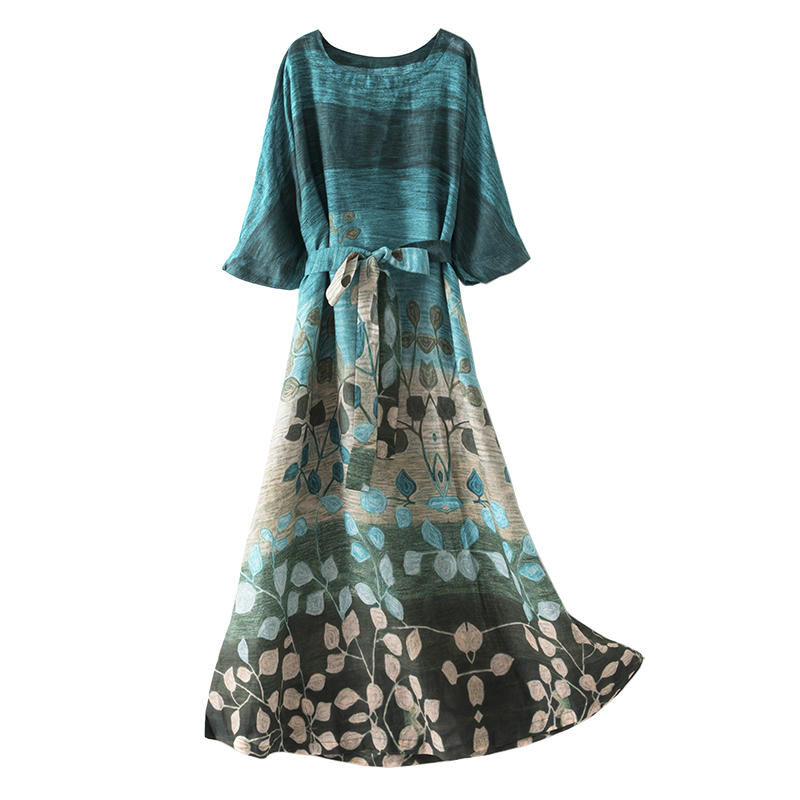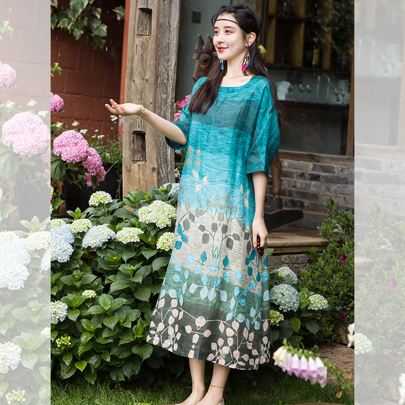 翠葛/冉裳仙气苎麻印花超仙春夏薄款森系连衣裙孔雀飞来花色a长裙