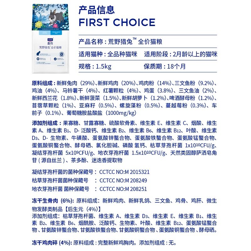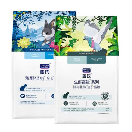 蓝氏乳鸽猎兔猫粮 低敏美毛增肌 挑嘴猫软便克星冻干肉松全猫粮