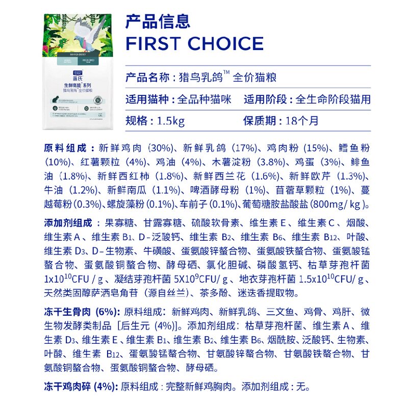 蓝氏猫粮冻干猎鸟乳鸽挑嘴猫粮