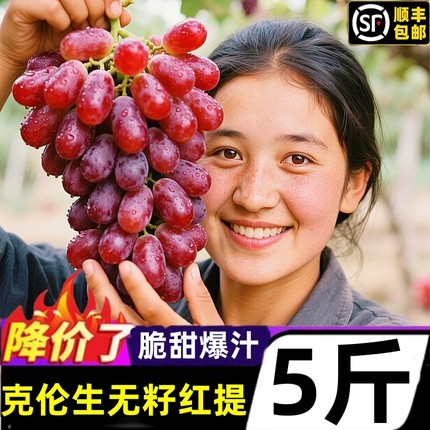 克伦生葡萄无籽红提当季新鲜水果现摘玻璃脆纯甜无核提子顺丰包邮